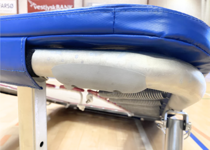 Sikkerheden er i top med den bløde kantpude, som omkranser springfladen. Kantpuden er produceret af formstabilt, blødt skum, betrukket med kraftig PVC-dug.