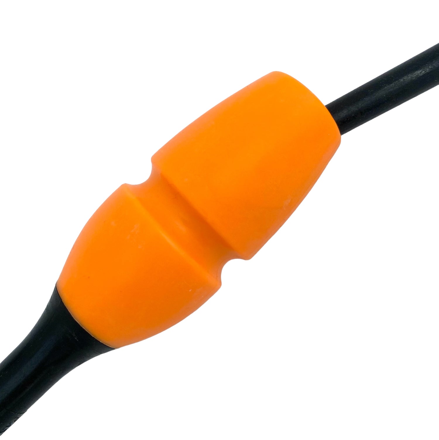 Tofarvet gymnastikkølle fra Pastorelli med en krop (den orange del) af gummi, hvilket gør, at køllen kan stødes mod gulvet og springe tilbage.