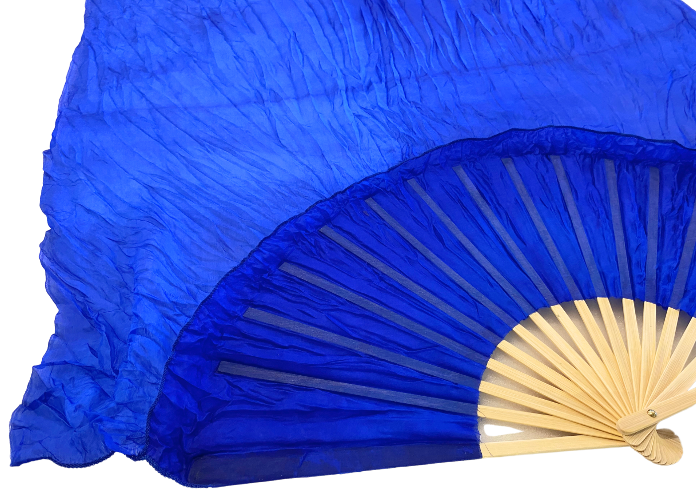 Viftevimplen er fremstillet af 170 x 80 cm let og smidigt silkestof, monteret på en 55 cm bred vifte lavet af bambustræ.