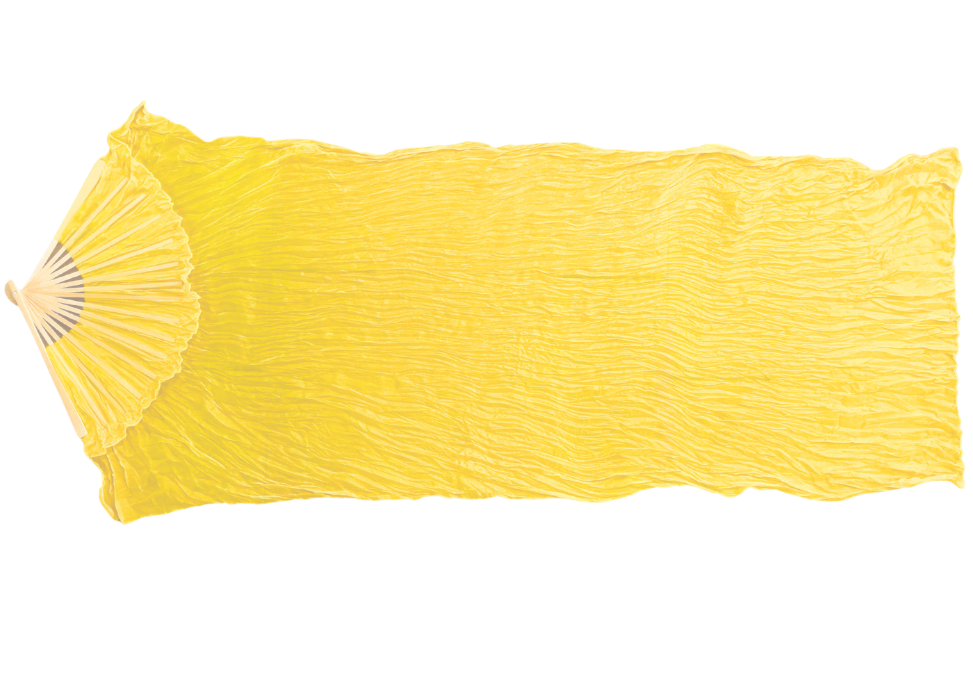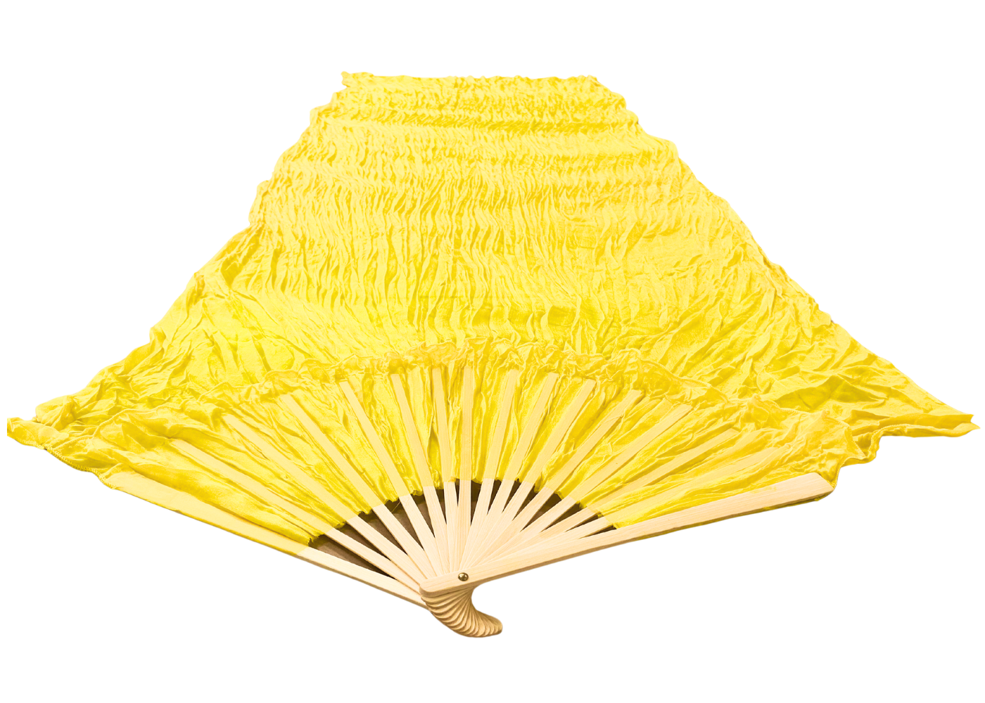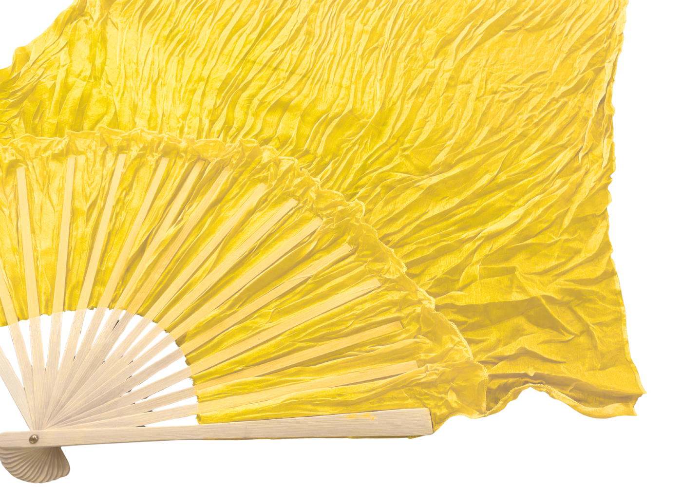 Viftevimplen er fremstillet af 170 x 80 cm let og smidigt silkestof, monteret på en 55 cm bred vifte lavet af bambustræ.
