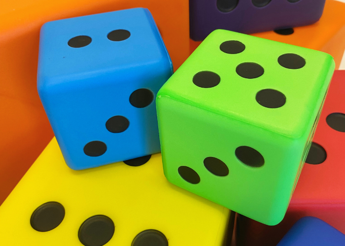 Stor skumterning til leg og sjove aktiviteter, hvor deltagerne både skal bruge hovedet og kroppen.