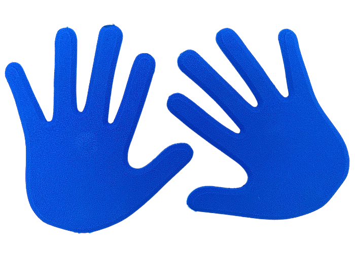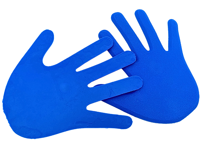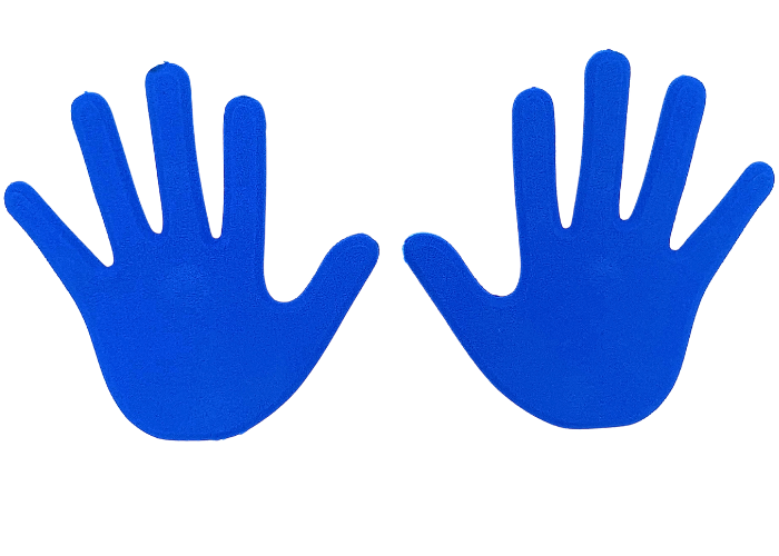 Blå markeringshænder er velegnet til indlæring af korrekt håndstilling i forskellige spring, til motorisk træning og leg.