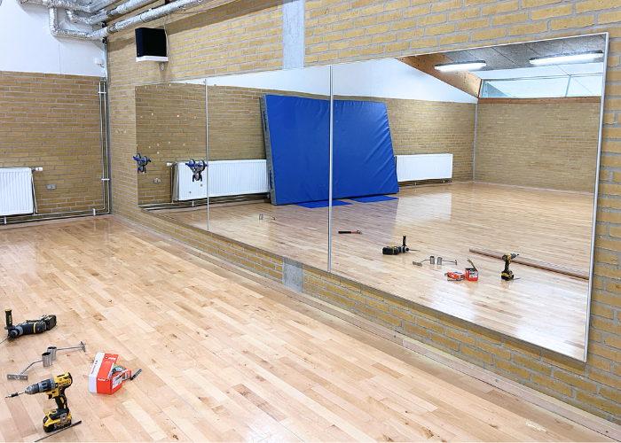 Foto: Pelany plademonteret spejlvæg monteret på Hals Skole.
