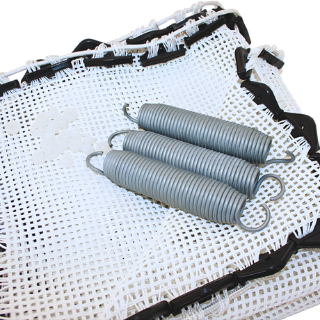 Tilbehør til minitrampoliner. Fødder, elastikker, kantpuder, fjedre, 2 string duge.