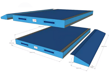 Alt i tilbehør til stortrampoliner - duge, fjedre, endestativer, måtter mm.