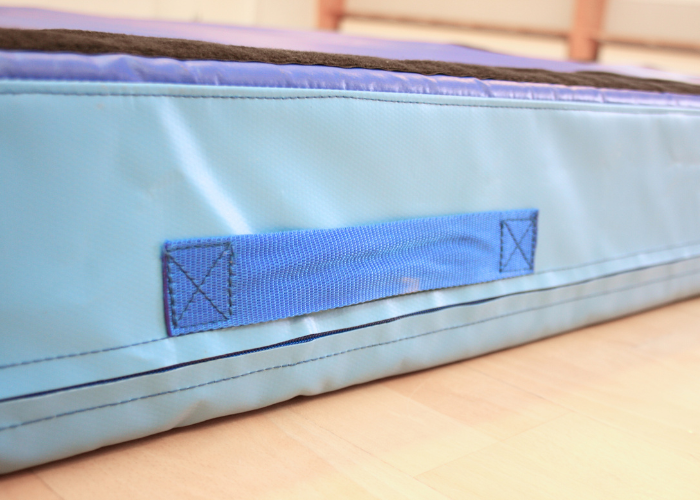 Opbygget af fast skum beklædt med støddæmperplade af polyethylen.