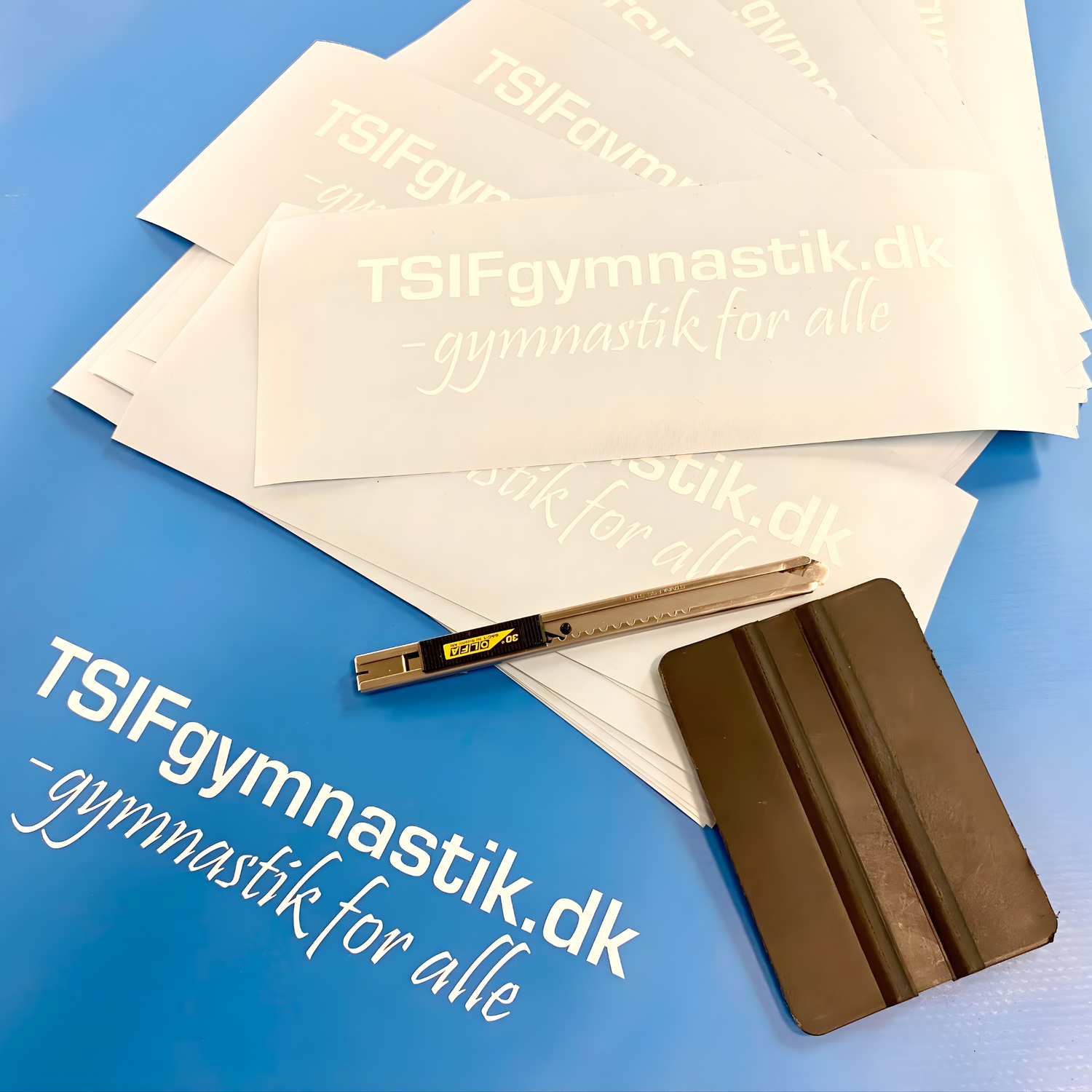 Logoet overføres direkte fra folien til gymnastikredskaber.