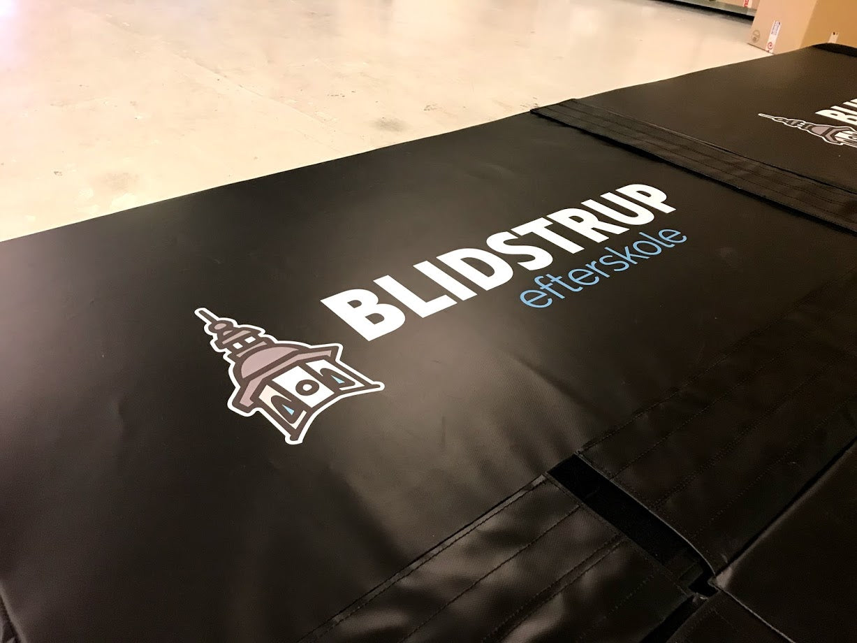 Her får du 2 logo og navn, fantastisk på skumredskaber eller airtracks.