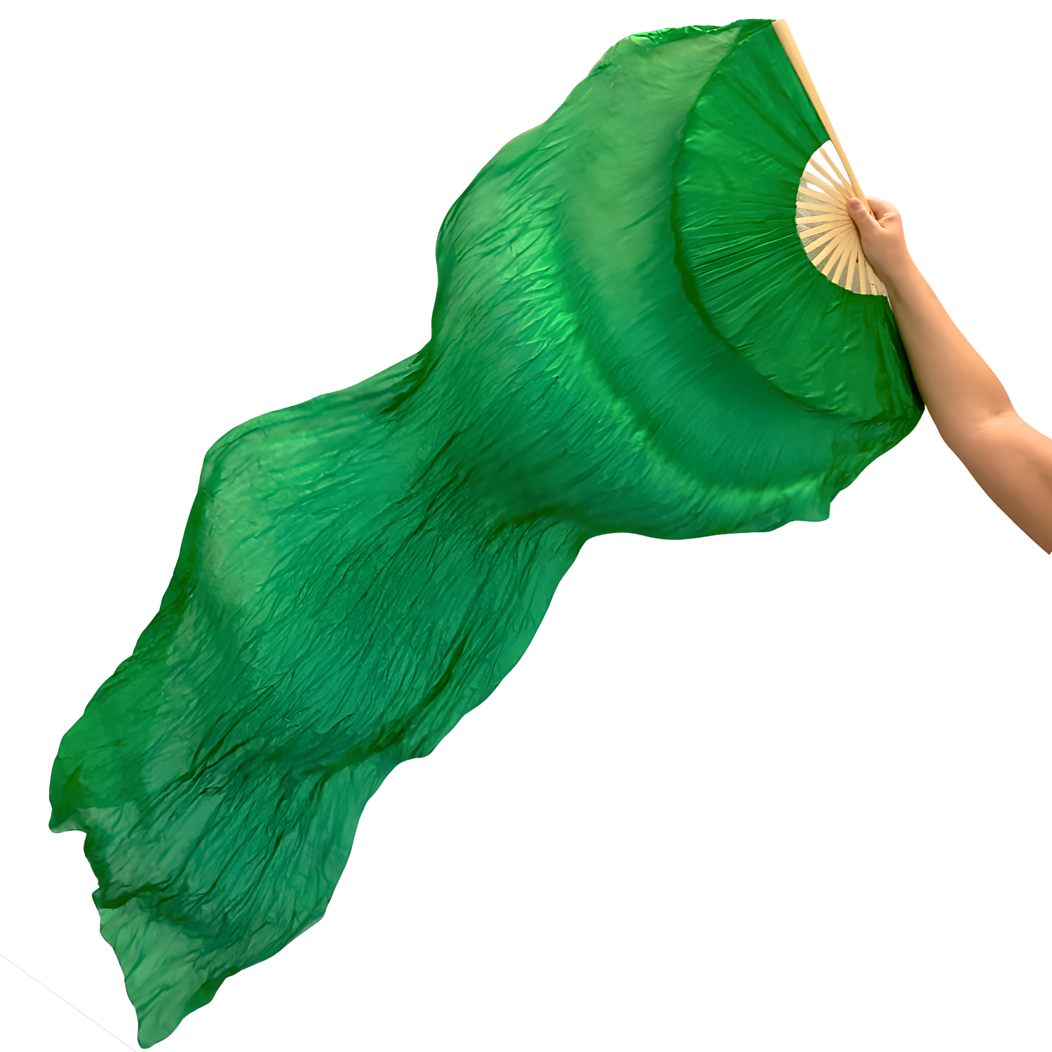 Viftevimplen er fremstillet af 170 x 80 cm let og smidigt silkestof, monteret på en 55 cm bred vifte lavet af bambustræ.