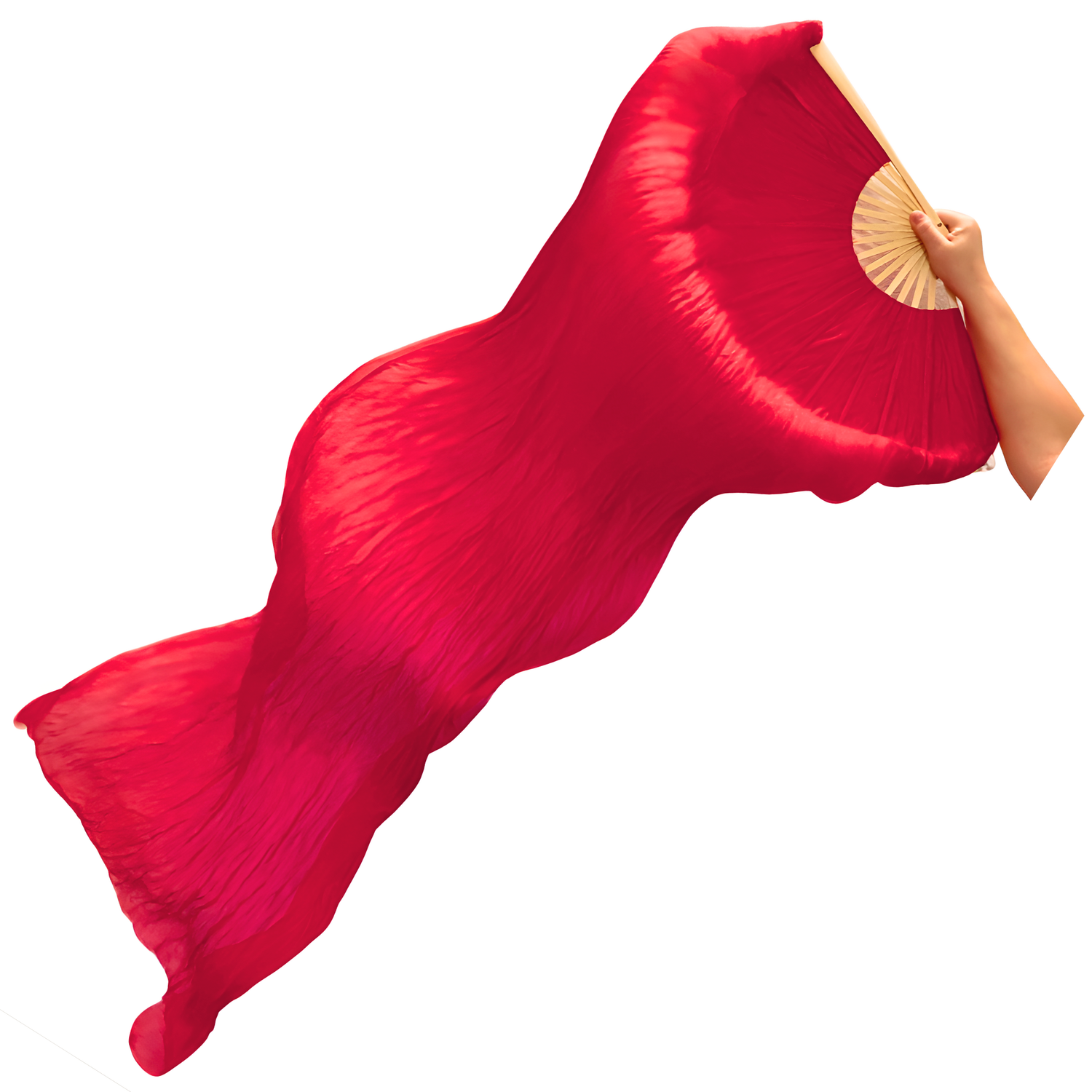Viftevimplen er fremstillet af 170 x 80 cm let og smidigt silkestof, monteret på en 55 cm bred vifte lavet af bambustræ.