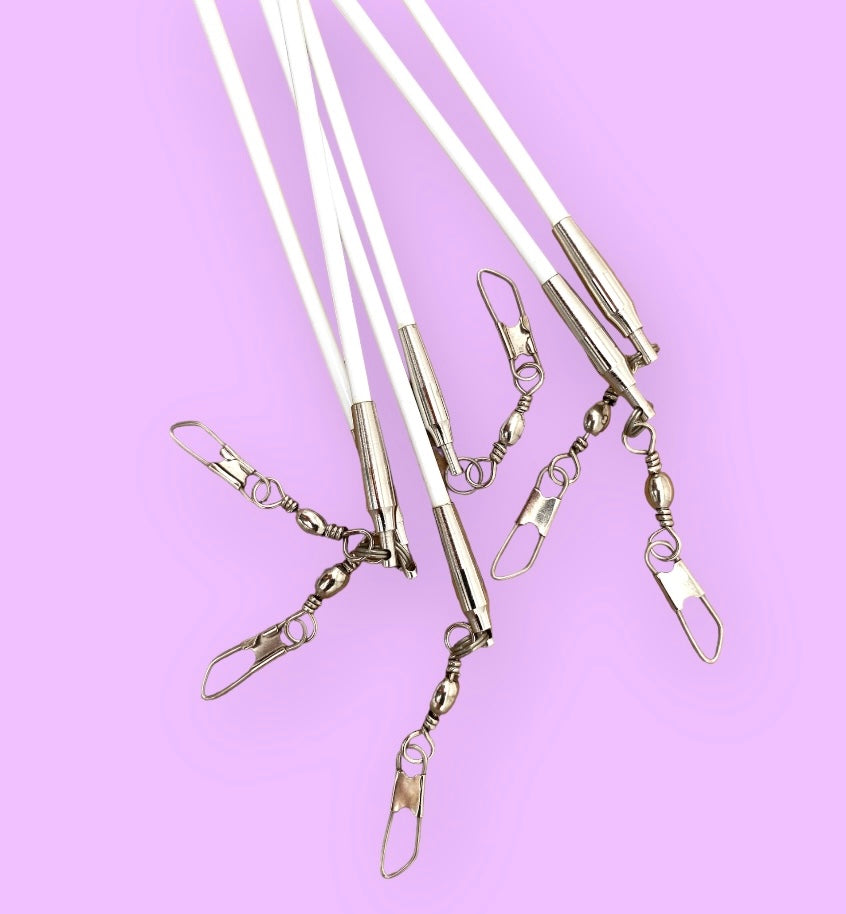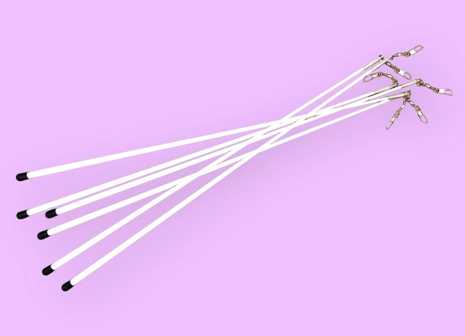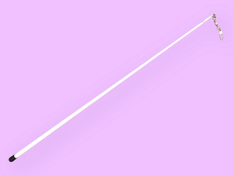 Klassisk hvid vimpelstang i glasfiber, med endeprop i gummi, samt øje og svirvel til vimpelmontering.