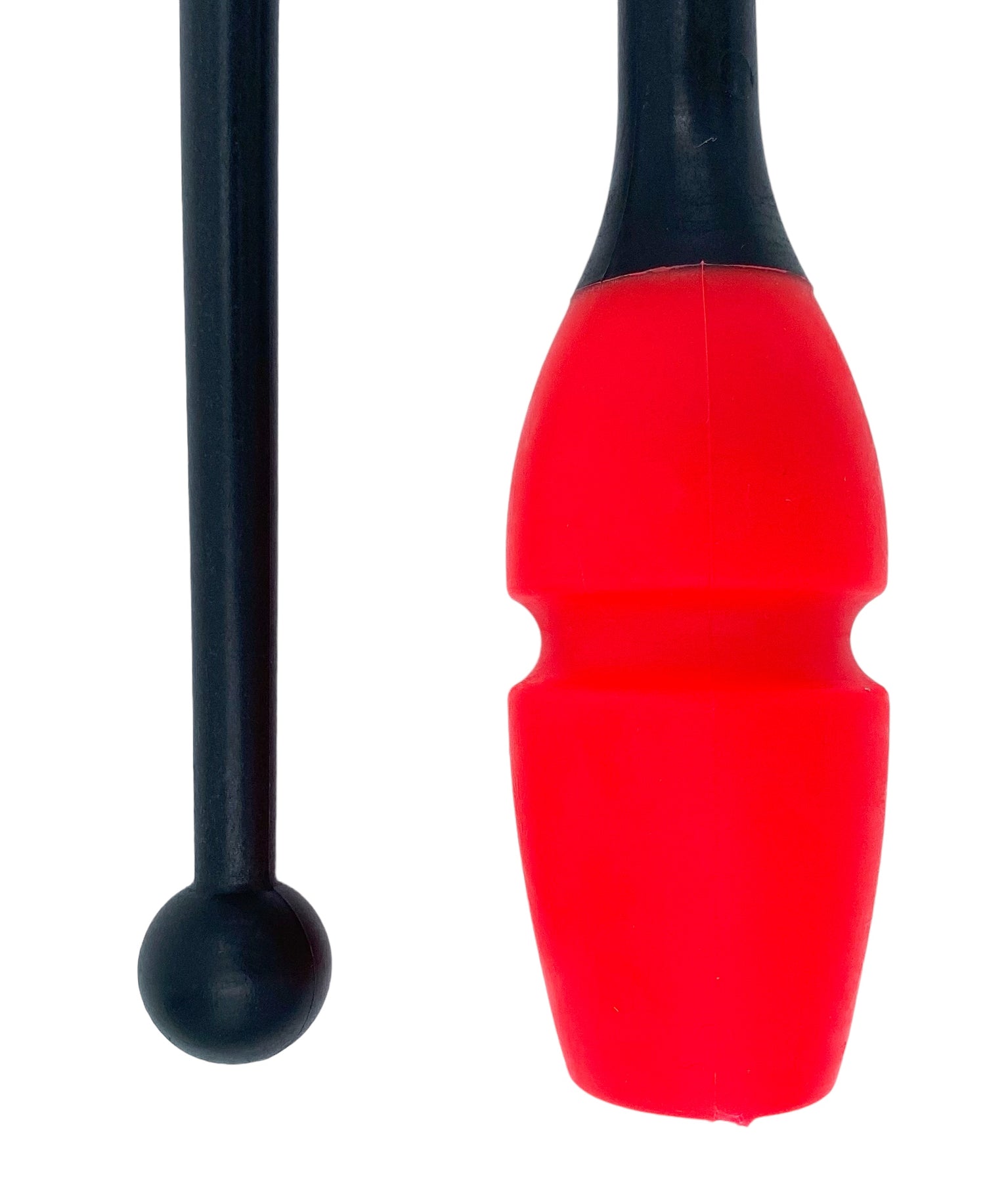Tofarvet gymnastikkølle fra Pastorelli med en krop (den korale del) af gummi, hvilket gør, at køllen kan stødes mod gulvet og springe tilbage.