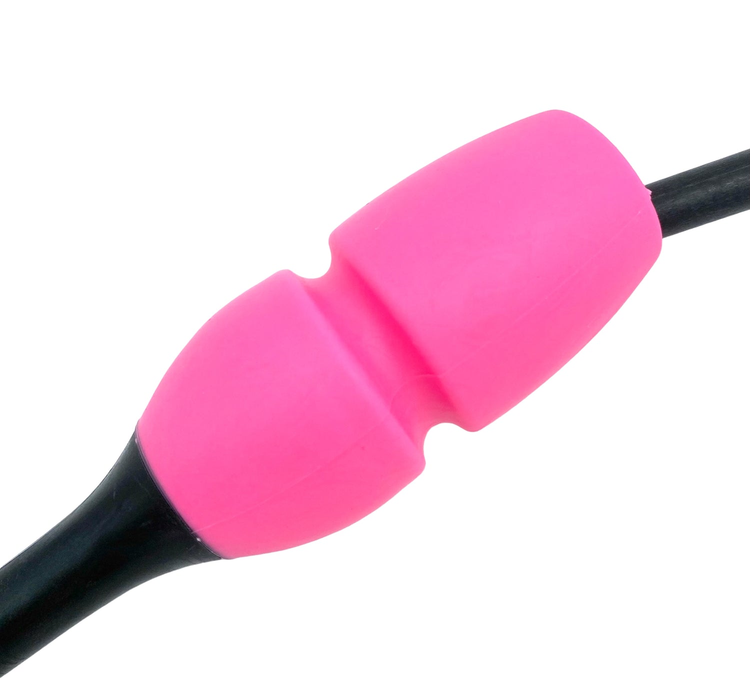 Tofarvet gymnastikkølle fra Pastorelli med en krop (den pink del) af gummi, hvilket gør, at køllen kan stødes mod gulvet og springe tilbage.