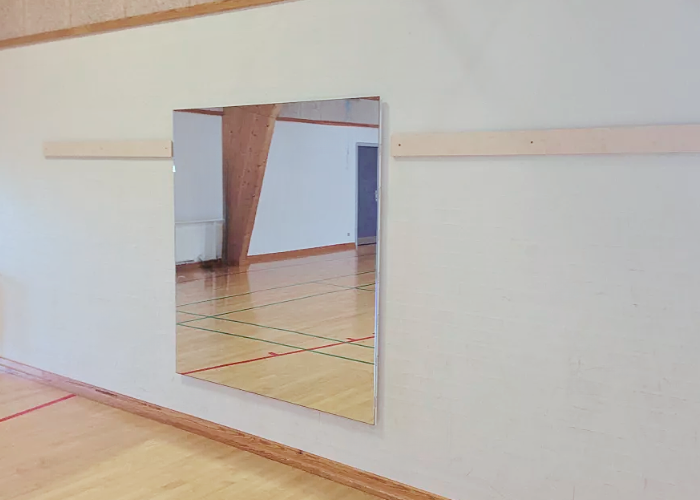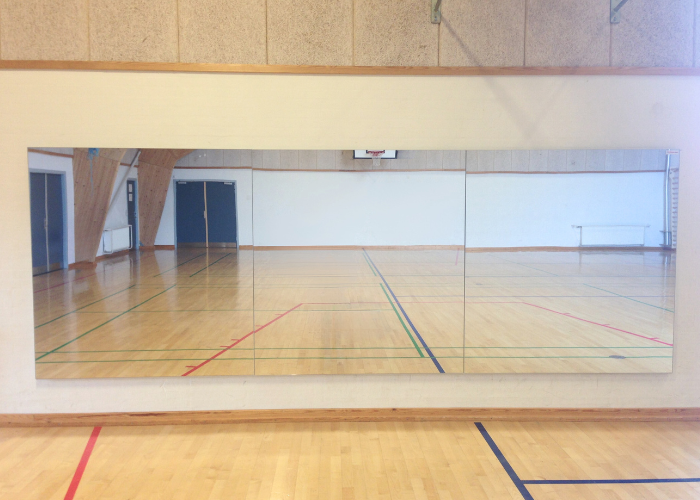 Foto: Pelany plademonteret spejlvæg monteret på Hals Skole.