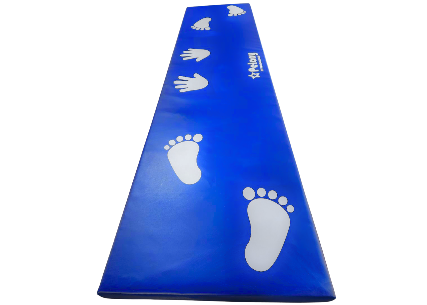 Denne innovative gymnastikmåtte er designet specielt til indøvning af det grundlæggende gymnastikspring vejrmøllen. Måtten er udstyret med billeder af hænder og fødder, som tydeligt angiver den korrekte placering for hænder og fødder under udførelsen af en vejrmølle. Dette visuelle hjælpemiddel gør det nemmere og sjovere for børn at øve sig og opnå den rette teknik.